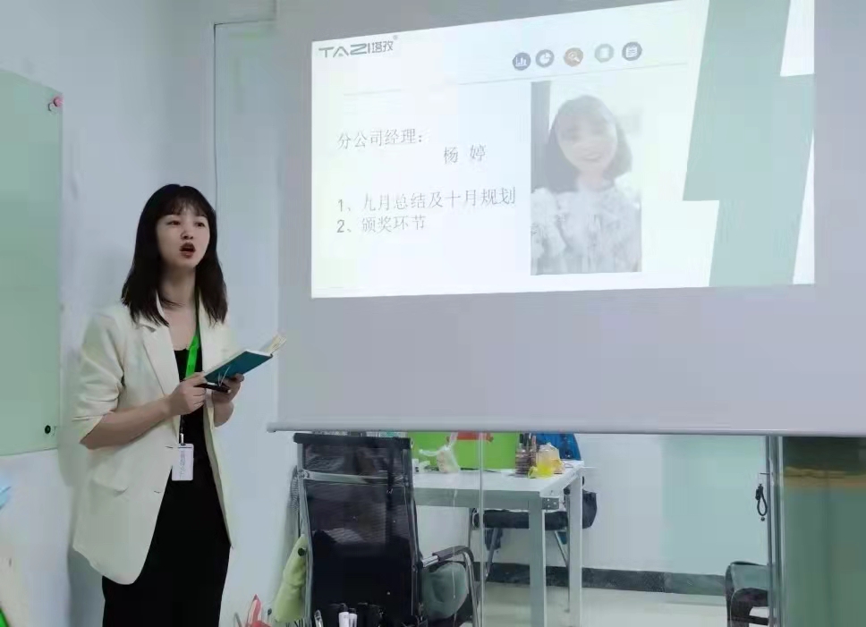 塔孜公司總部大區(qū)經(jīng)理兼蚌埠公司總經(jīng)理鄒白云女士,上臺致辭,她表示秋天是個收獲的季節(jié),為了完成九月的共同業(yè)績目標,公司全員上下一心,群策群力,奮力拼搏;月底沖刺雖略有遺憾,但是完全展現(xiàn)出塔孜人不拋棄不放棄、善始善終的企業(yè)文化。