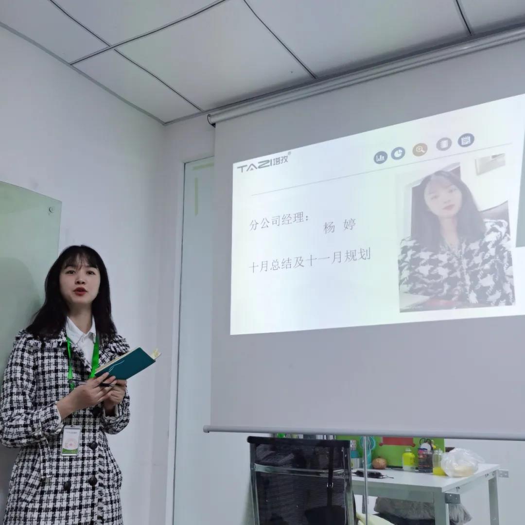塔孜公司總部大區(qū)經(jīng)理兼蚌埠公司總經(jīng)理鄒白云女士對十月份公司整體工作情況進行分析總結(jié)。鄒總希望全體員工保持熱情與斗志,強調(diào)在不確定的市場下,管理者要樹立正確的目標,奮勇沖鋒,在危機中育先機,變局中開新局,思變方有出路。