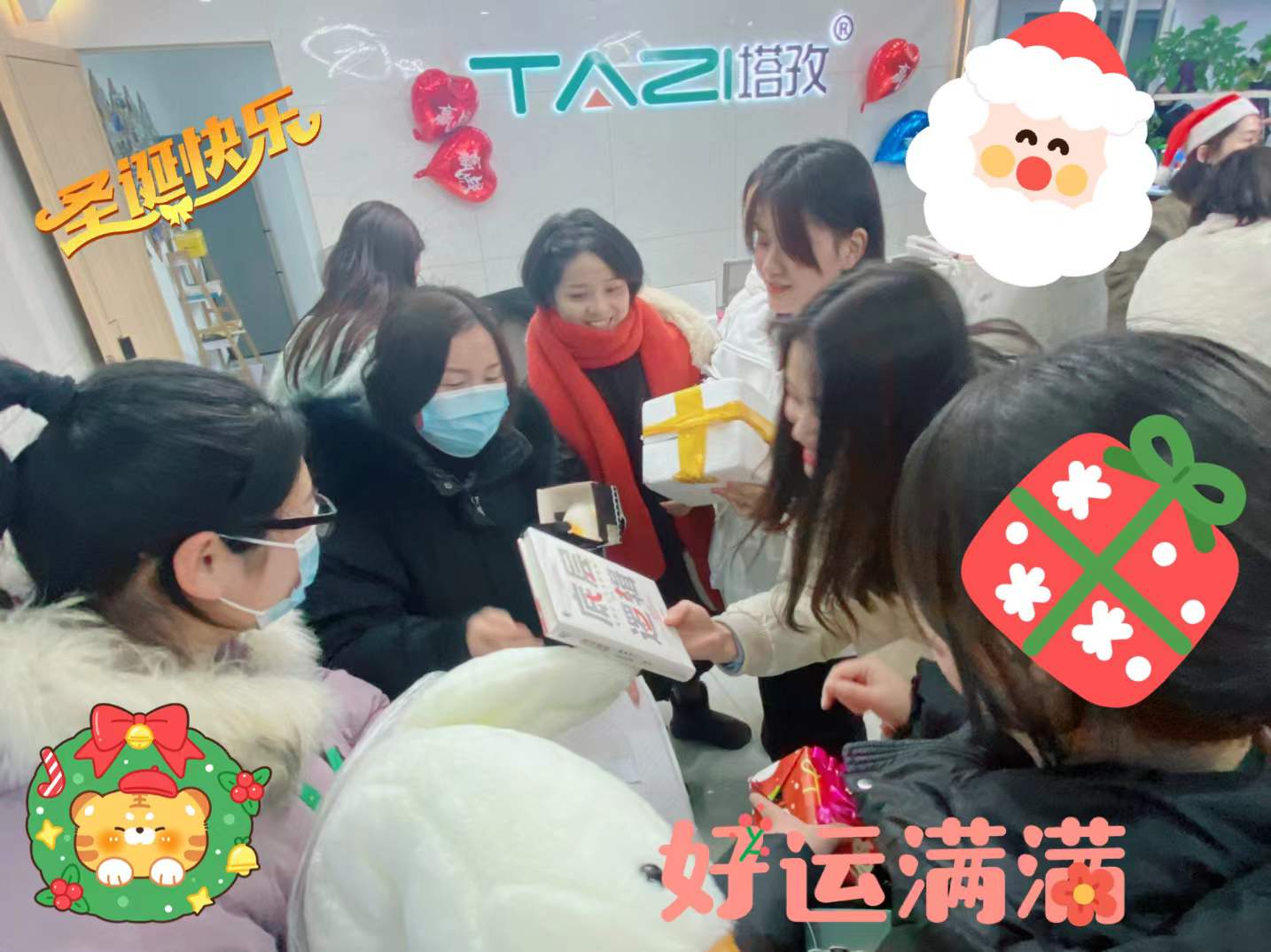 今年是塔孜舉辦“圣誕交換禮物”的第三年。在圣誕前一周發(fā)出征集開始,5天時間,我們陸陸續(xù)續(xù)收到的禮物將公司前臺歡樂的“圣誕海洋”。為增加禮物的神秘感,增加節(jié)日氣氛,人事部對小伙伴們準備的禮物提前進行了包裝,刺激與驚喜并存。