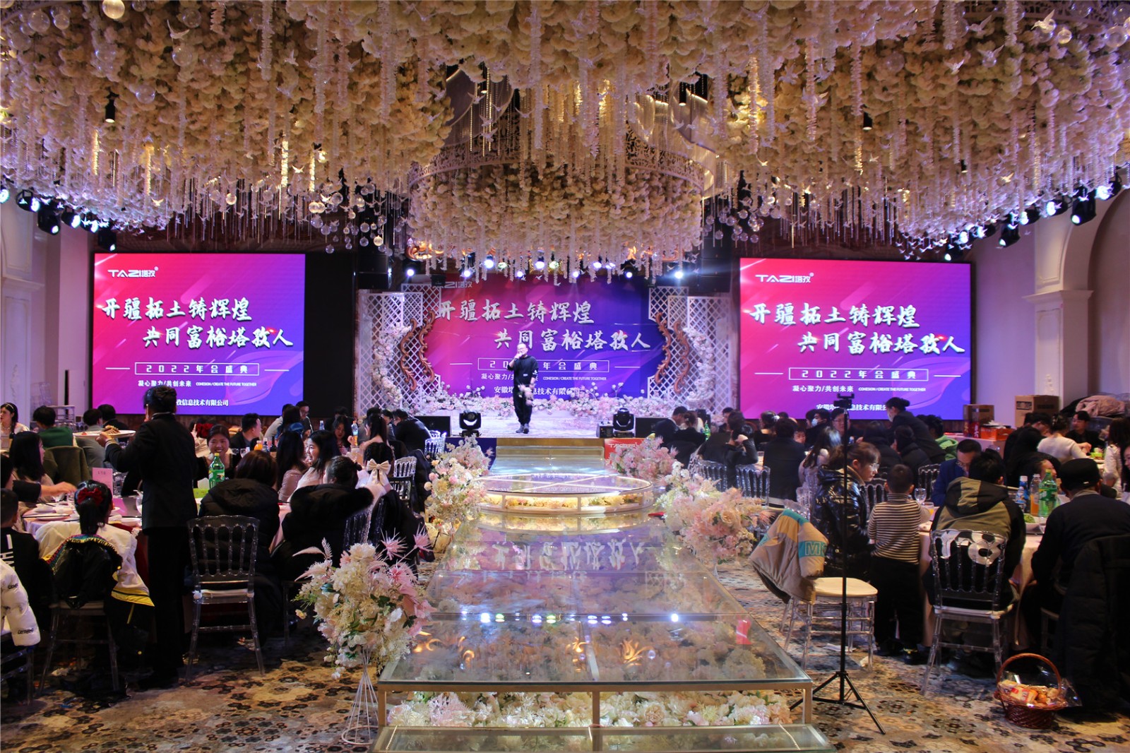 2022年1月26日下午塔孜管理層和蚌埠全體員工齊聚新東安主題宴會酒店,以『開疆拓土鑄輝煌,共同富裕塔孜人』為主題,年會燃情開幕。在歡笑中送走輝煌的2021年,也為2022開啟嶄新篇章。