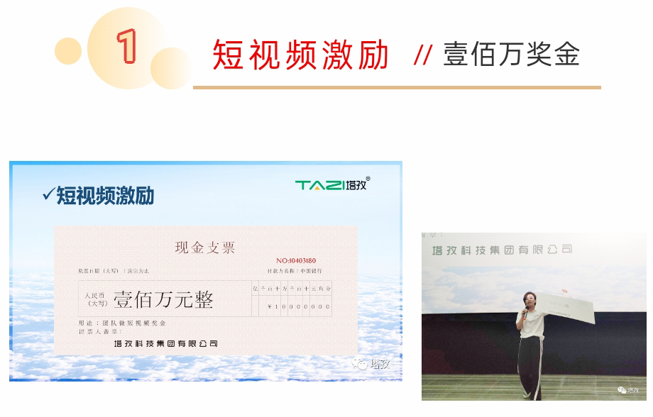 接下來是一個(gè)振奮人心的好消息,大會(huì)由揚(yáng)州分公司經(jīng)理吳總和蚌埠總經(jīng)理鄒總,分別為大家公布集團(tuán)下半年激勵(lì)政策:“短視頻激勵(lì)壹佰萬獎(jiǎng)金”和“馬來西亞/日本”出國旅游